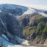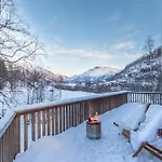 De 3-slaapkamer Minnehaugen I Handeland Lodge Sauda ligt op 7 km van Allmannajuvet en biedt een terras met uitzicht op de berg.